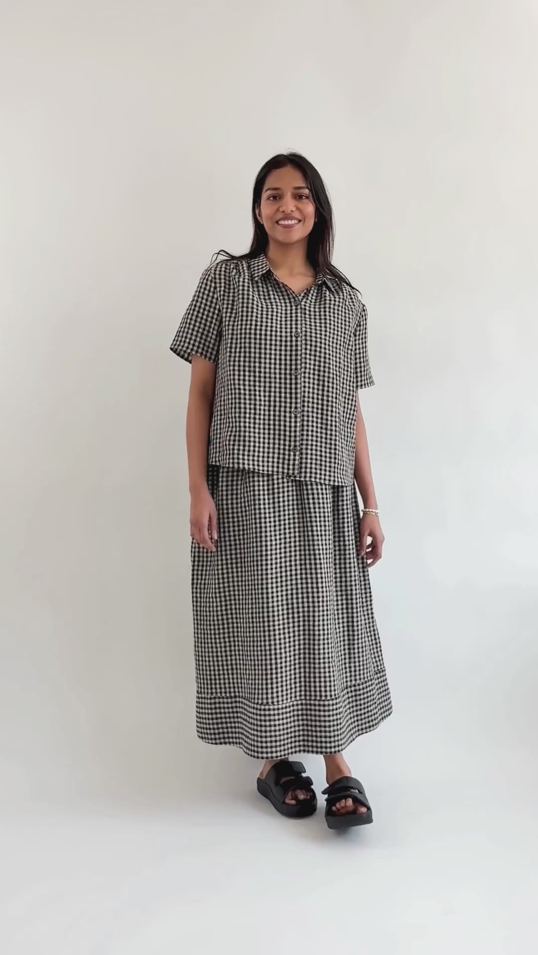 A note from Sarah: Gingham is always in style, wearable spring - summer and through fall. This top and the skirt will be my go-to set this season. I'm packing it to wear in Italy!